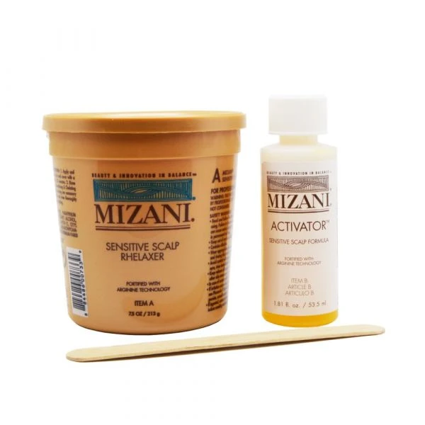 SIZE: NET WT.7.5 OZ / 213 g MIZANI ACTIVATOR (ITEM B) Sensitive Scalp Formula IMPORTANT : Before applying to hair, thoroughly mix with Creme Relaxer Base (ITEM A). INGREDIENTS : FIL CODE 42207 SS2 AQUA/WATER, GUANIDINE CARBONATE, PROPYLENE GLYCOL, ARGININE, TETRASODIUM EDTA POLYQUATERNIUM-16, CI 19140/YELLOW 5, DENATONIUM BENZOATE. SIZE : 2.0 FL OZ / 59 ml
