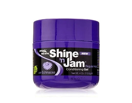 Shine ’n Jam® Regular Hold – the gel you have been waiting for: free of alcohol, parabens, wax, petrolatum and silicones. This moisturizing, non-flaking gel has a firm, non-greasy hold. Enhanced with Echinacea to help promote hair growth. Great for soft waves, braids, locks, twists or any style your heart desires!