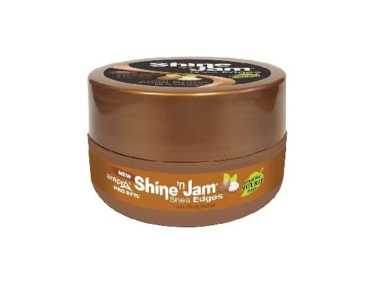 Shine ’n Jam® Shea Edges® – gives you beautiful edges all day! Enhanced with Shea Butter and Silk Protein, this unique formula firmly holds your edges down while adding a sleek, finished look. It provides a powerful hold without allowing hair to harden.