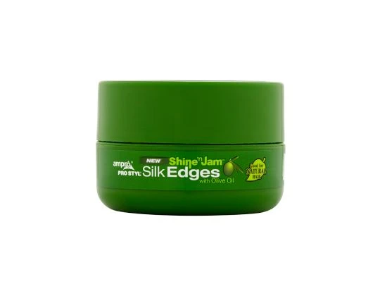Shine ’n Jam® Silk Edges® – enhanced with Olive Oil and Silk Protein to keep your hair looking healthy as you manage your style. This non-greasy formula firmly holds your edges down while adding a sleek, sophisticated look. Provides a powerful hold without allowing hair to harden.