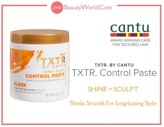 TXTR by Cantu Control Paste is the go-to solution for sculpted and sleek styles without the flakes. Contains no silicone, mineral oil, parabens or sulfates.